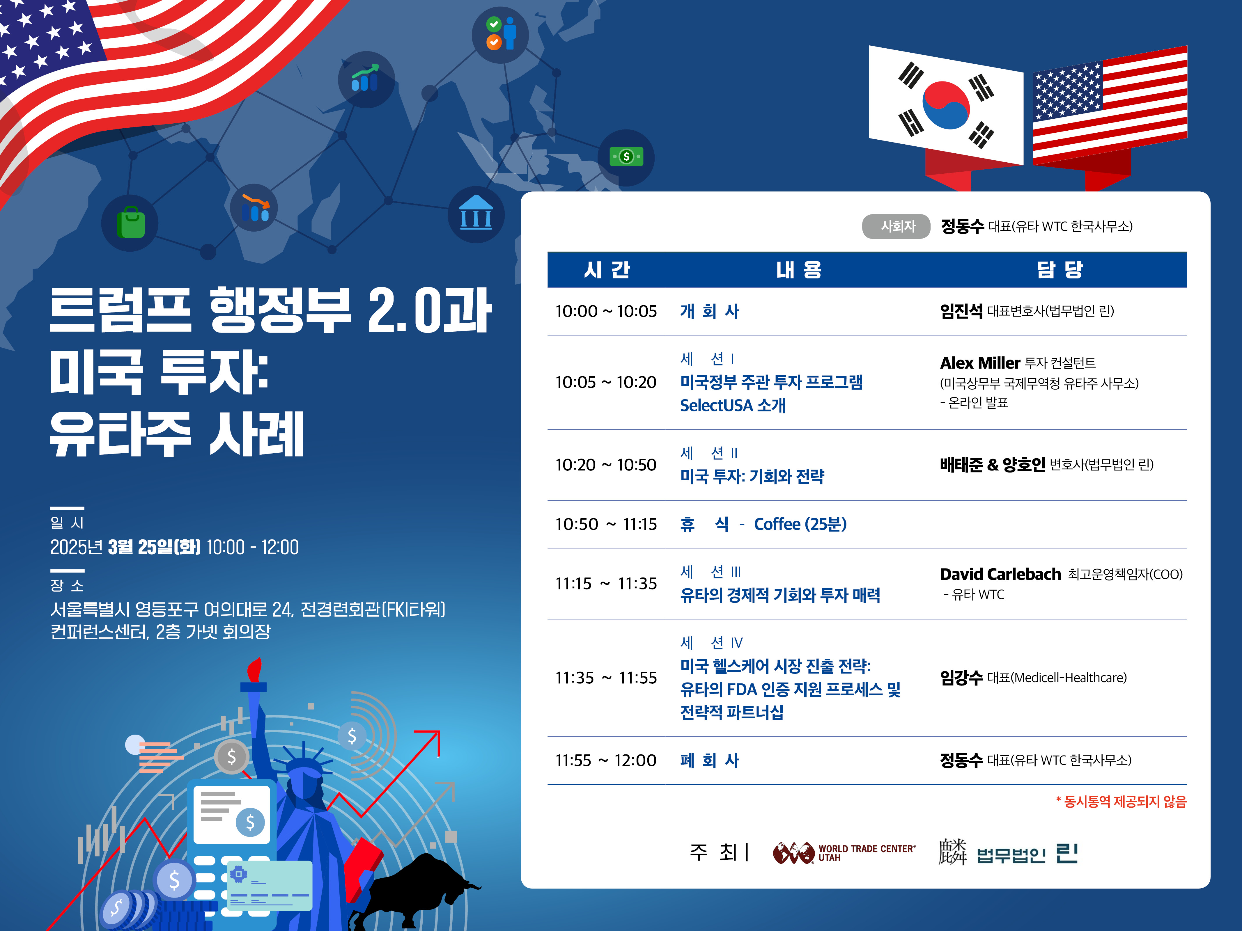 Concluding the seminar, Dong Soo Jung, CEO of WTC Utah in Seoul said that the seminar was very beneficial for companies seeking to proactively respond to the policy changes of the Trump Administration 2.0 and to establish strategic investment foothlds in the U.S. He expressed his hope that the two countries will continue to have substantial investment cooperation in the future.