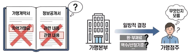 (1) 가맹본부가 가맹사업자에 비해 상당한 우위에 있는 경우가 많고, 이에 더하여 가맹사업법은 가맹본부로 하여금 가맹희망자에게 가맹계약 체결 전에 계약의 주요 내용이 적힌 가맹계약서를 교부하도록 하고 있습니다.