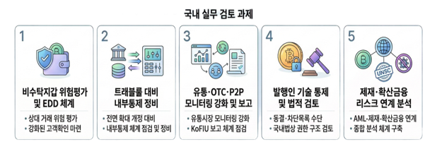 • 유통시장·OTC·P2P 현금화 경로에 대한 모니터링 강화 및 KoFIU 보고 체계 점검
